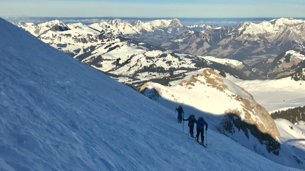 En randonnée à ski, je constate aussi une réticence à utiliser des équipements de sécurité, et pas seulement le casque. Combien de fois n’ai-je pas vu des skieurs attendre le dernier moment, alors qu’ils sont engagés dans une pente raide et glacée, pour enfin mettre leurs couteaux? En équilibre instable, ils risquent la chute. Souvent ils entravent la progression des personnes derrière eux, les obligeant à quitter la trace et donc à prendre des risques inutiles.